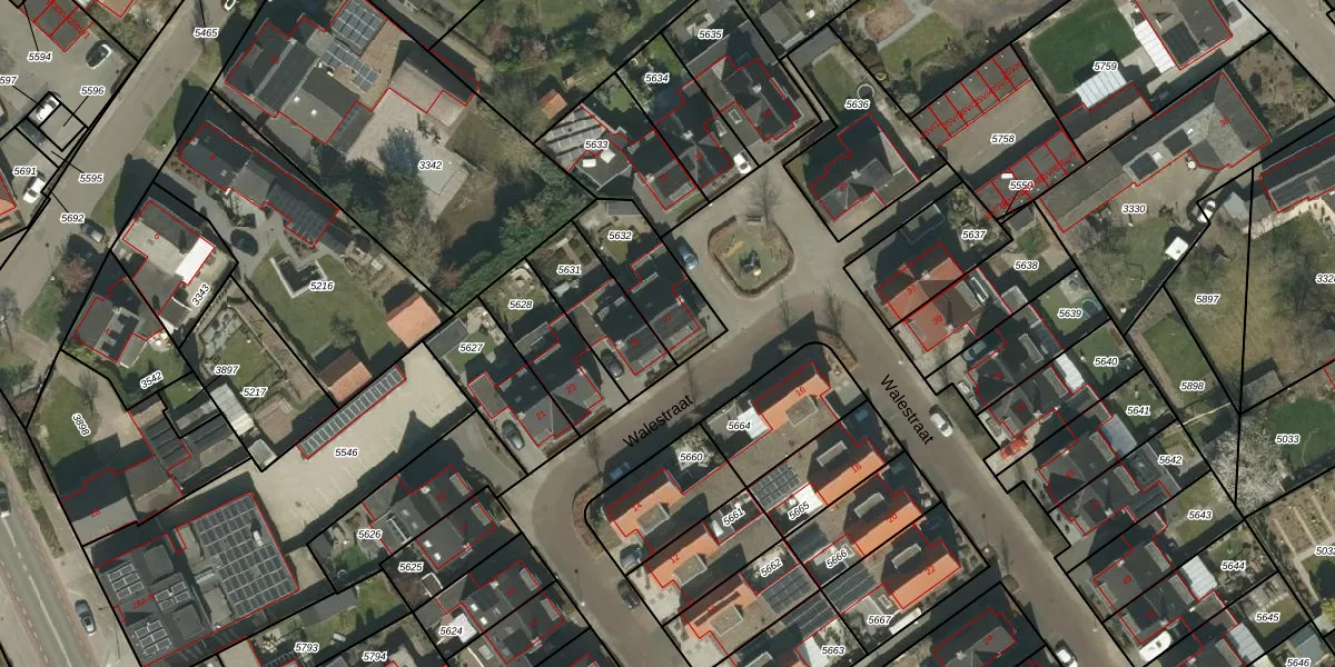 Het perceel waarop Walestraat 27 staat heeft een oppervlakte van 242 m². Dit is een middelgroot perceel. De perceeloppervlakte wordt geregistreerd door het Kadaster. Gedetailleerde informatie over de maten van dit perceel kunt u vinden in het rapport Kadastrale kaart met maatvoering van Walestraat 27.