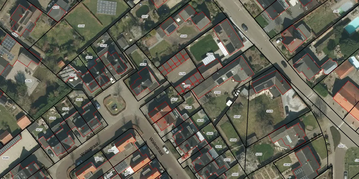Het perceel waarop Walestraat 35-V-11 staat heeft een oppervlakte van 362 m². Dit is een groot perceel. De perceeloppervlakte wordt geregistreerd door het Kadaster. Gedetailleerde informatie over de maten van dit perceel kunt u vinden in het rapport Kadastrale kaart met maatvoering van Walestraat 35-V-11.