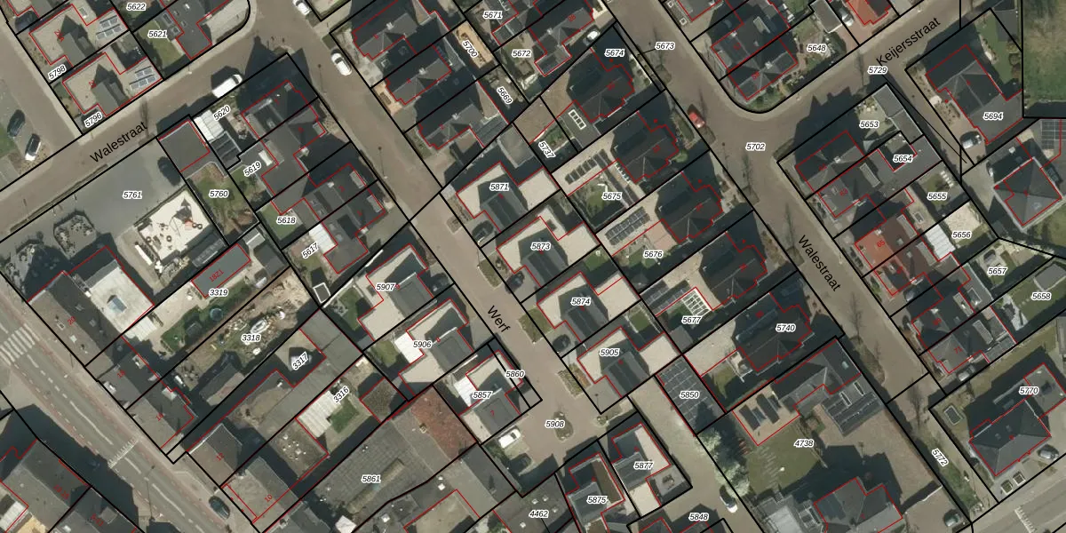 Het perceel waarop Werf 2 staat heeft een oppervlakte van 242 m². Dit is een middelgroot perceel. De perceeloppervlakte wordt geregistreerd door het Kadaster. Gedetailleerde informatie over de maten van dit perceel kunt u vinden in het rapport Kadastrale kaart met maatvoering van Werf 2.