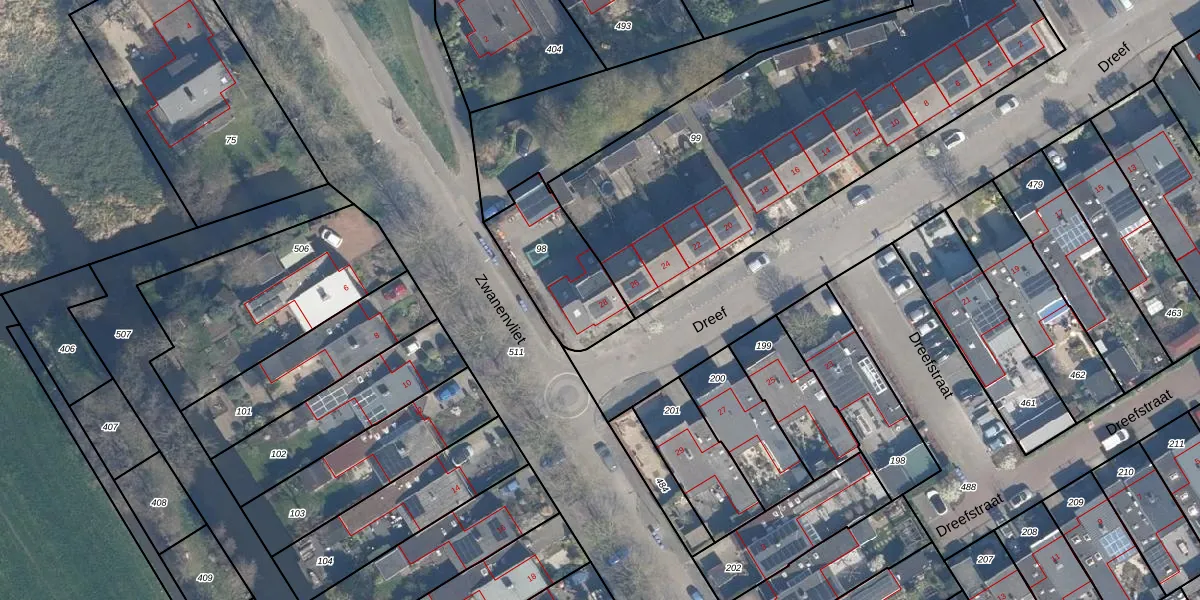 Het perceel waarop Dreef 28 staat heeft een oppervlakte van 355 m². Dit is een groot perceel. De perceeloppervlakte wordt geregistreerd door het Kadaster. Gedetailleerde informatie over de maten van dit perceel kunt u vinden in het rapport Kadastrale kaart met maatvoering van Dreef 28.