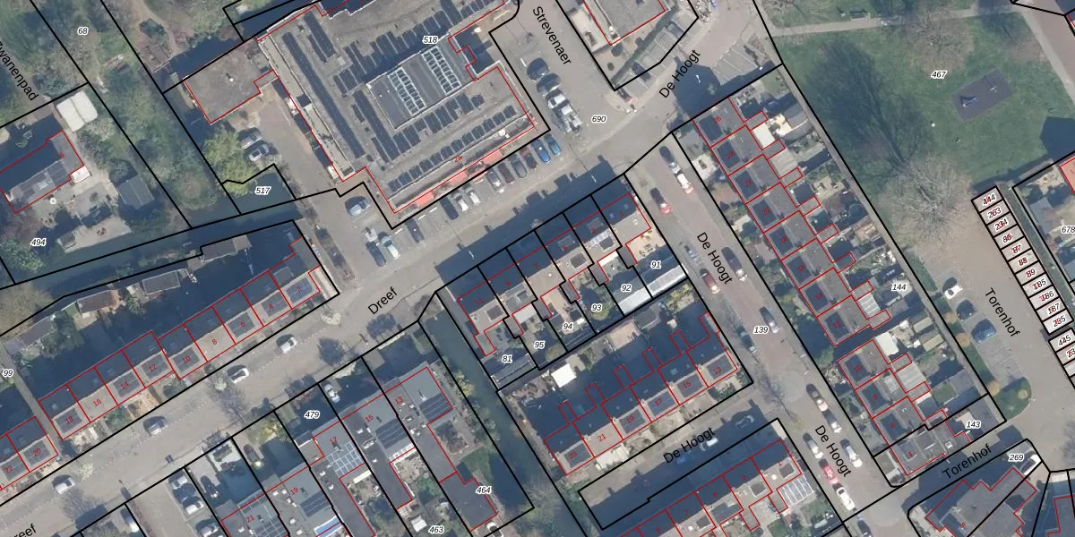 Het perceel waarop Dreef 7 staat heeft een oppervlakte van 141 m². Dit is een middelgroot perceel. De perceeloppervlakte wordt geregistreerd door het Kadaster. Gedetailleerde informatie over de maten van dit perceel kunt u vinden in het rapport Kadastrale kaart met maatvoering van Dreef 7.