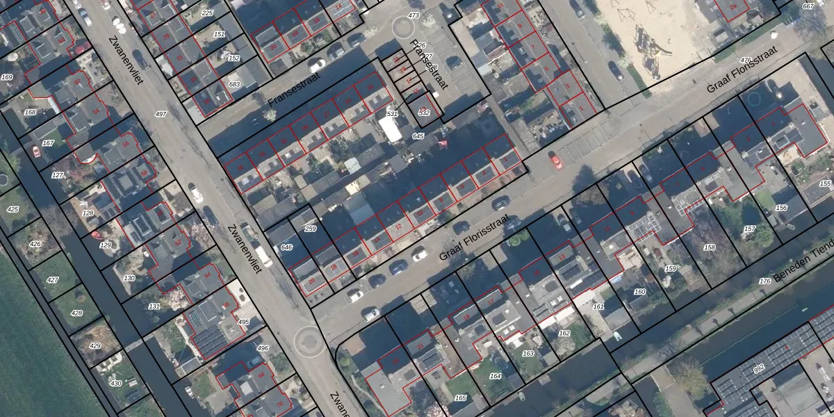 Het perceel waarop Graaf Florisstraat 10 staat heeft een oppervlakte van 2889 m². Dit is een zeer groot perceel. De perceeloppervlakte wordt geregistreerd door het Kadaster. Gedetailleerde informatie over de maten van dit perceel kunt u vinden in het rapport Kadastrale kaart met maatvoering van Graaf Florisstraat 10.
