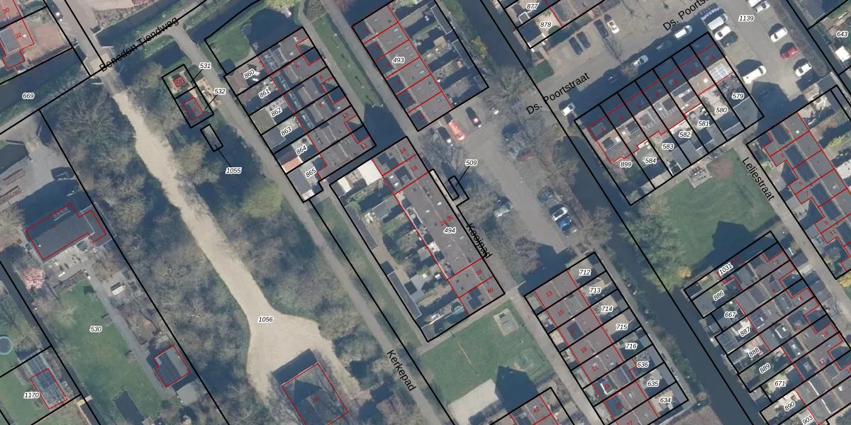Het adres ligt op het perceel SKK00-E-494, dat zich in de kadastrale gemeente Streefkerk bevindt. Het perceel is 930 m² groot. Dat is kleiner dan de gemiddelde perceeloppervlakte in Streefkerk, dat op 8832,24 m² ligt. Het grootste perceel in de kadastrale gemeente is 30,3 ha. Het kleinste perceel heeft een oppervlakte van 0 m². Er zijn 14 adressen aanwezig op het perceel. De huidige grenzen van het perceel zijn digitaal in de Basisregistratie Kadaster (BRK) geregistreerd op 25-02-2011.
