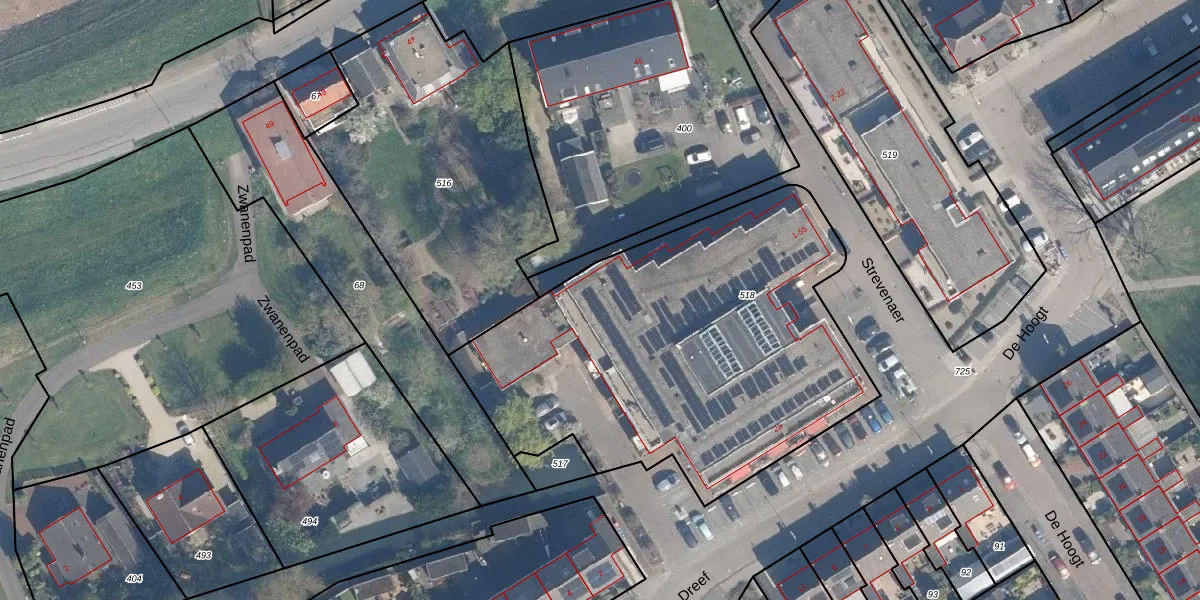 Het perceel waarop Strevenaer 55 staat heeft een oppervlakte van 2200 m². Dit is een zeer groot perceel. De perceeloppervlakte wordt geregistreerd door het Kadaster. Gedetailleerde informatie over de maten van dit perceel kunt u vinden in het rapport Kadastrale kaart met maatvoering van Strevenaer 55.