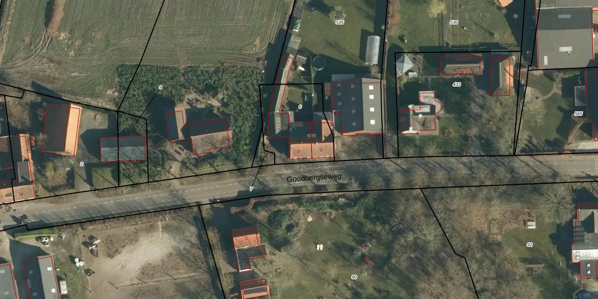 Het perceel waarop Goudbergseweg 5 staat heeft een oppervlakte van 550 m². Dit is een groot perceel. De perceeloppervlakte wordt geregistreerd door het Kadaster. Gedetailleerde informatie over de maten van dit perceel kunt u vinden in het rapport Kadastrale kaart met maatvoering van Goudbergseweg 5.