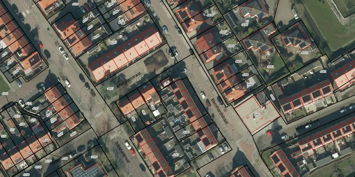 Bernhardstraat 42 is gelegen op kadastraal perceel SEN00N4297. Deze kadastrale aanduiding is uniek en wordt gebruikt door het Kadaster om eigendomsrechten en andere zakelijke rechten vast te leggen. Het perceel maakt onderdeel uit van de kadastrale gemeente Strijen.