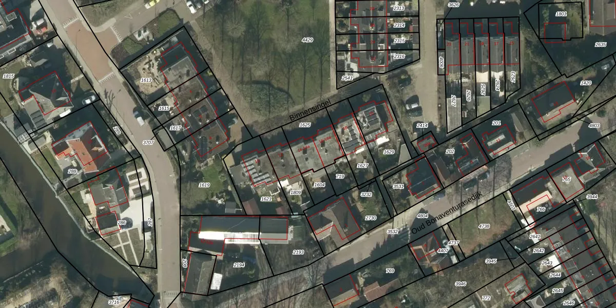 Het perceel waarop Binnensingel 14 staat heeft een oppervlakte van 264 m². Dit is een middelgroot perceel. De perceeloppervlakte wordt geregistreerd door het Kadaster. Gedetailleerde informatie over de maten van dit perceel kunt u vinden in het rapport Kadastrale kaart met maatvoering van Binnensingel 14.