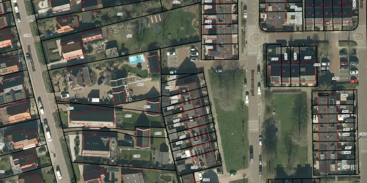 Het perceel waarop Binnensingel 63 staat heeft een oppervlakte van 200 m². Dit is een middelgroot perceel. De perceeloppervlakte wordt geregistreerd door het Kadaster. Gedetailleerde informatie over de maten van dit perceel kunt u vinden in het rapport Kadastrale kaart met maatvoering van Binnensingel 63.