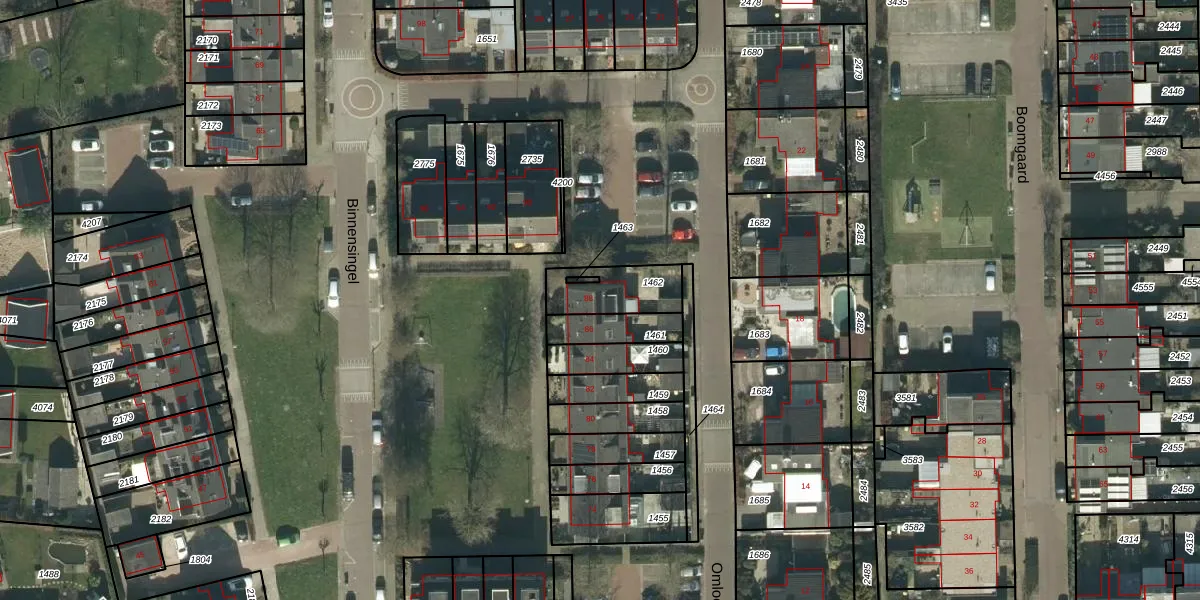 Het perceel waarop Binnensingel 88 staat heeft een oppervlakte van 182 m². Dit is een middelgroot perceel. De perceeloppervlakte wordt geregistreerd door het Kadaster. Gedetailleerde informatie over de maten van dit perceel kunt u vinden in het rapport Kadastrale kaart met maatvoering van Binnensingel 88.