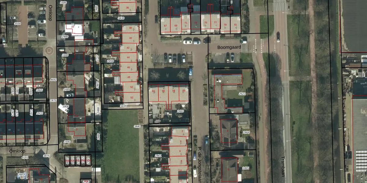 Het perceel waarop Boomgaard 60 staat heeft een oppervlakte van 504 m². Dit is een groot perceel. De perceeloppervlakte wordt geregistreerd door het Kadaster. Gedetailleerde informatie over de maten van dit perceel kunt u vinden in het rapport Kadastrale kaart met maatvoering van Boomgaard 60.