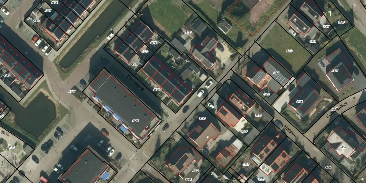 Het perceel waarop Damweide 2 staat heeft een oppervlakte van 834 m². Dit is een groot perceel. De perceeloppervlakte wordt geregistreerd door het Kadaster. Gedetailleerde informatie over de maten van dit perceel kunt u vinden in het rapport Kadastrale kaart met maatvoering van Damweide 2.