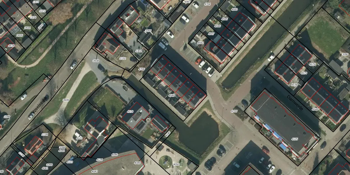 Het perceel waarop Damweide 7 staat heeft een oppervlakte van 703 m². Dit is een groot perceel. De perceeloppervlakte wordt geregistreerd door het Kadaster. Gedetailleerde informatie over de maten van dit perceel kunt u vinden in het rapport Kadastrale kaart met maatvoering van Damweide 7.