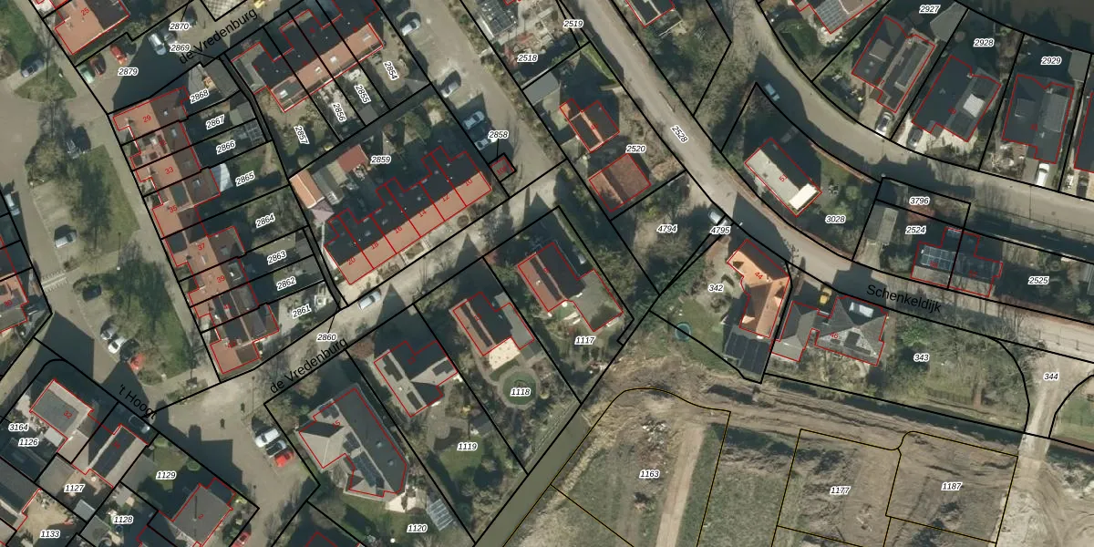 Gebruik de zoekbalk of klik op een perceel voor informatie over de adressen binnen dit perceel.