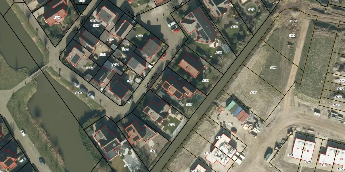 Het perceel waarop Doornbos 3 staat heeft een oppervlakte van 485 m². Dit is een groot perceel. De perceeloppervlakte wordt geregistreerd door het Kadaster. Gedetailleerde informatie over de maten van dit perceel kunt u vinden in het rapport Kadastrale kaart met maatvoering van Doornbos 3.