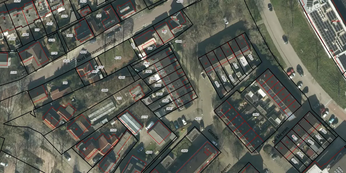 Gebruik de zoekbalk of klik op een perceel voor informatie over de adressen binnen dit perceel.