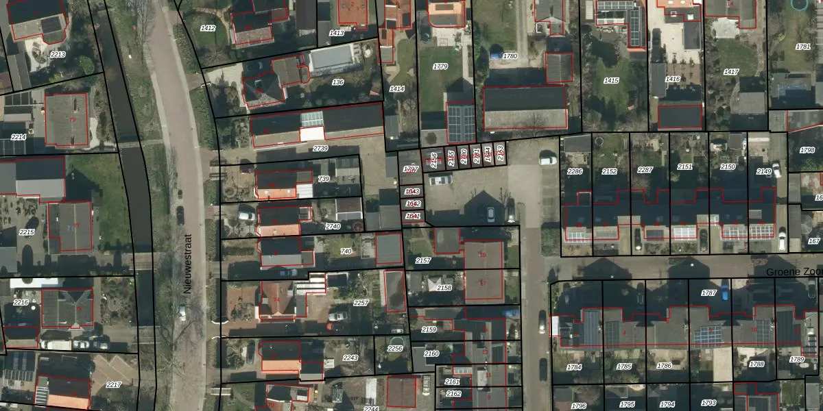 Gebruik de zoekbalk of klik op een perceel voor informatie over de adressen binnen dit perceel.