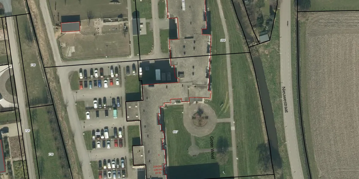 Het perceel waarop Grote Weel 122 staat heeft een oppervlakte van 4859 m². Dit is een zeer groot perceel. De perceeloppervlakte wordt geregistreerd door het Kadaster. Gedetailleerde informatie over de maten van dit perceel kunt u vinden in het rapport Kadastrale kaart met maatvoering van Grote Weel 122.