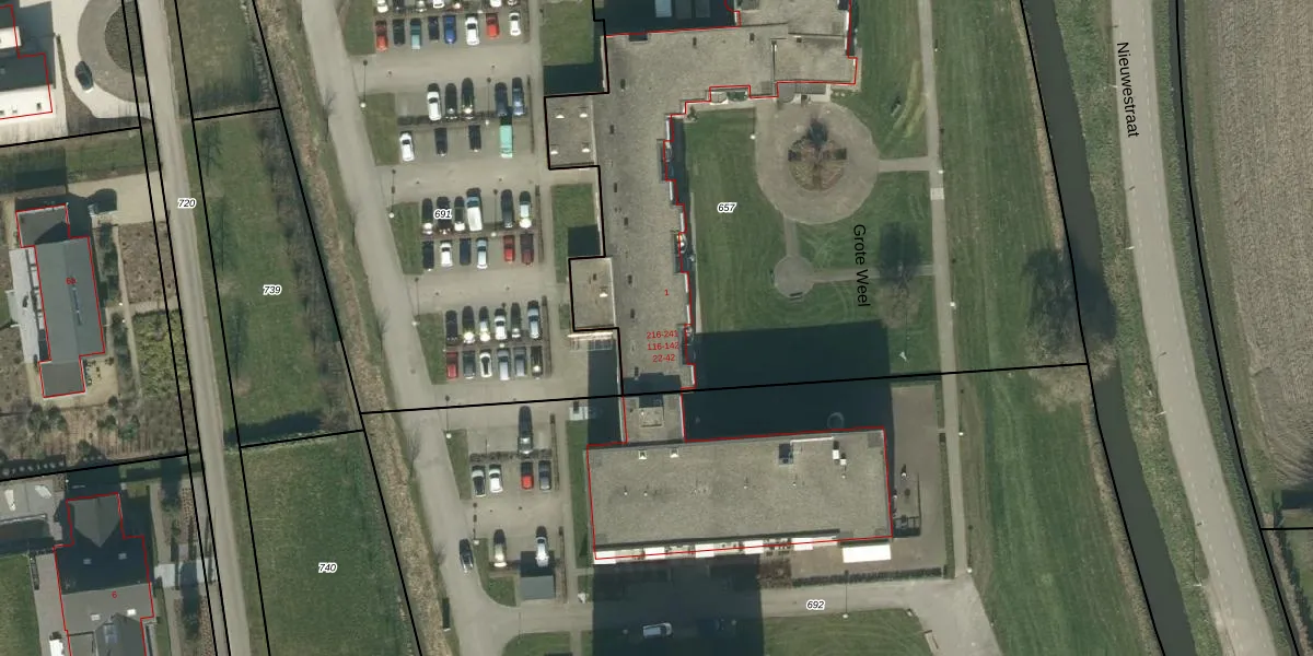 Het perceel waarop Grote Weel 125 staat heeft een oppervlakte van 4859 m². Dit is een zeer groot perceel. De perceeloppervlakte wordt geregistreerd door het Kadaster. Gedetailleerde informatie over de maten van dit perceel kunt u vinden in het rapport Kadastrale kaart met maatvoering van Grote Weel 125.
