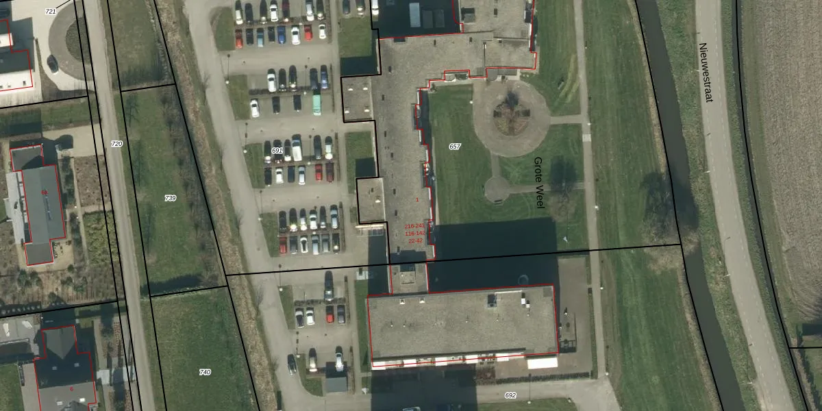 Het perceel waarop Grote Weel 127 staat heeft een oppervlakte van 4859 m². Dit is een zeer groot perceel. De perceeloppervlakte wordt geregistreerd door het Kadaster. Gedetailleerde informatie over de maten van dit perceel kunt u vinden in het rapport Kadastrale kaart met maatvoering van Grote Weel 127.