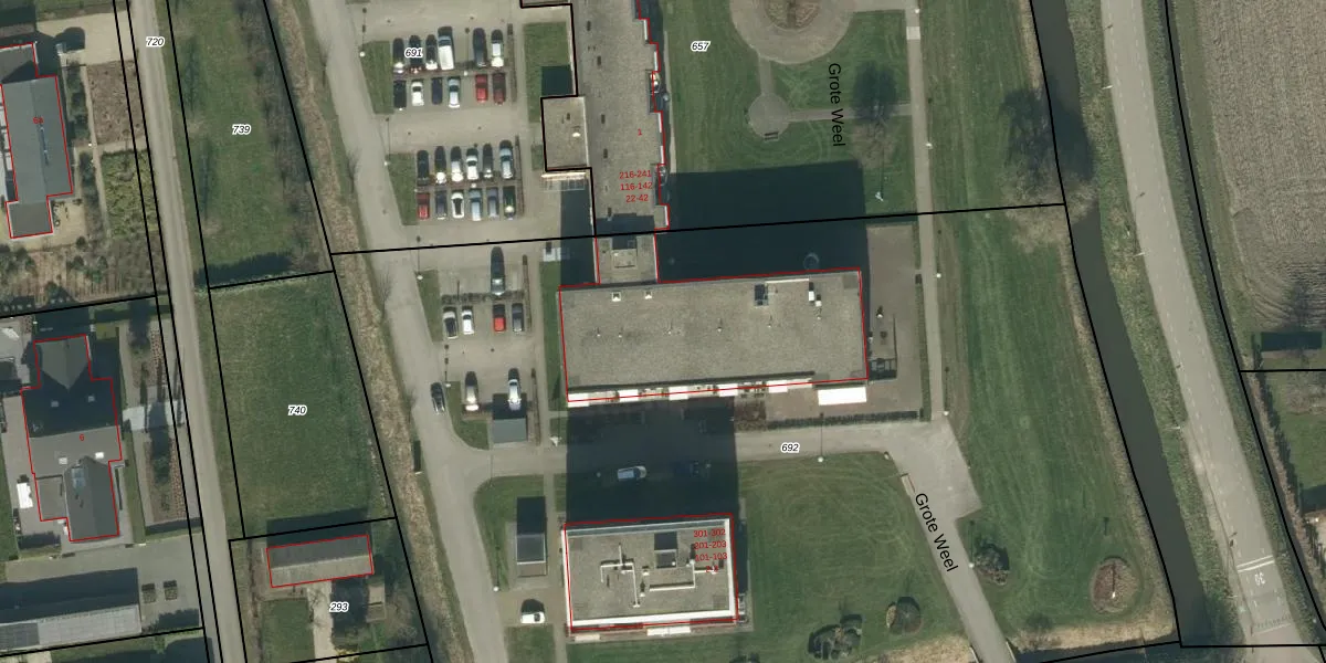 Het perceel waarop Grote Weel 219 staat heeft een oppervlakte van 8785 m². Dit is een zeer groot perceel. De perceeloppervlakte wordt geregistreerd door het Kadaster. Gedetailleerde informatie over de maten van dit perceel kunt u vinden in het rapport Kadastrale kaart met maatvoering van Grote Weel 219.