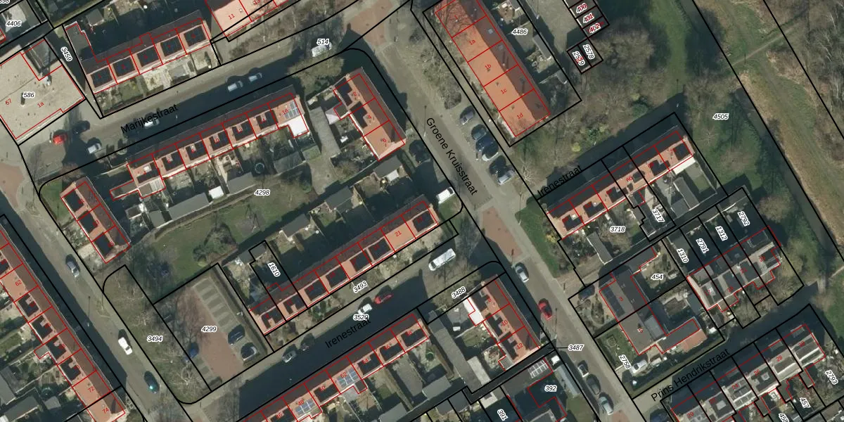 Het perceel waarop Irenestraat 23 staat heeft een oppervlakte van 3635 m². Dit is een zeer groot perceel. De perceeloppervlakte wordt geregistreerd door het Kadaster. Gedetailleerde informatie over de maten van dit perceel kunt u vinden in het rapport Kadastrale kaart met maatvoering van Irenestraat 23.