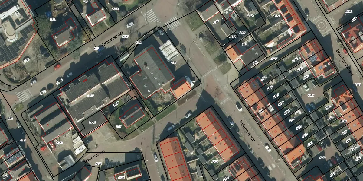 Het perceel waarop Julianastraat 8 staat heeft een oppervlakte van 1170 m². Dit is een zeer groot perceel. De perceeloppervlakte wordt geregistreerd door het Kadaster. Gedetailleerde informatie over de maten van dit perceel kunt u vinden in het rapport Kadastrale kaart met maatvoering van Julianastraat 8.
