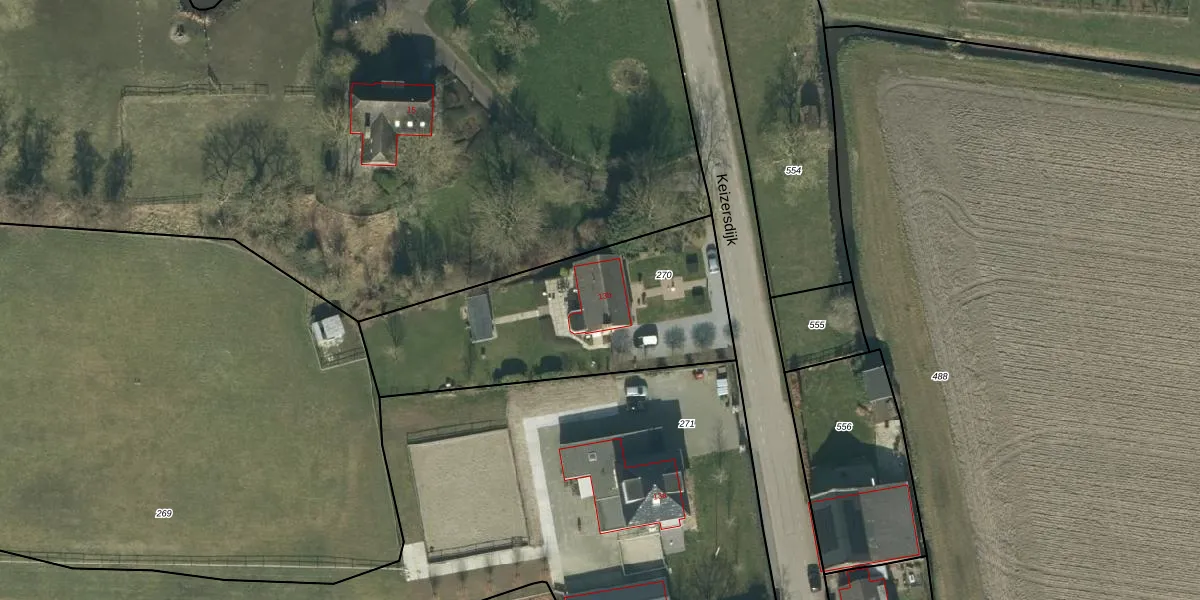 Keizersdijk 13-b is gelegen op kadastraal perceel SEN00W270. Deze kadastrale aanduiding is uniek en wordt gebruikt door het Kadaster om eigendomsrechten en andere zakelijke rechten vast te leggen. Het perceel maakt onderdeel uit van de kadastrale gemeente Strijen.