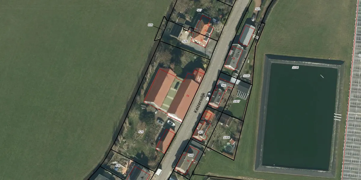 Het perceel waarop Keizersdijk 29 staat heeft een oppervlakte van 1980 m². Dit is een zeer groot perceel. De perceeloppervlakte wordt geregistreerd door het Kadaster. Gedetailleerde informatie over de maten van dit perceel kunt u vinden in het rapport Kadastrale kaart met maatvoering van Keizersdijk 29.