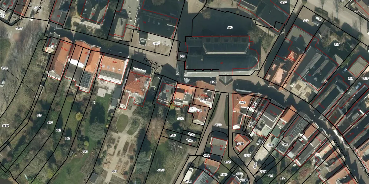 Het perceel waarop Kerkstraat 61 staat heeft een oppervlakte van 350 m². Dit is een groot perceel. De perceeloppervlakte wordt geregistreerd door het Kadaster. Gedetailleerde informatie over de maten van dit perceel kunt u vinden in het rapport Kadastrale kaart met maatvoering van Kerkstraat 61.