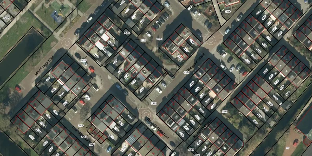 Gebruik de zoekbalk of klik op een perceel voor informatie over de adressen binnen dit perceel.