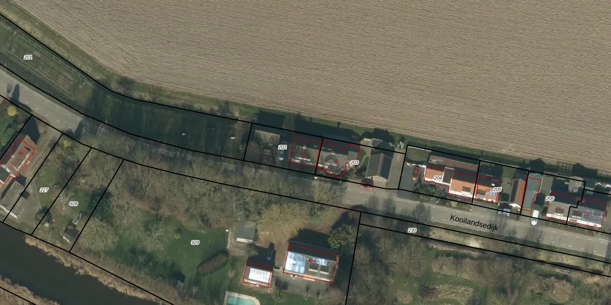 Kooilandsedijk 13 is gelegen op kadastraal perceel SEN00V202. Deze kadastrale aanduiding is uniek en wordt gebruikt door het Kadaster om eigendomsrechten en andere zakelijke rechten vast te leggen. Het perceel maakt onderdeel uit van de kadastrale gemeente Strijen.