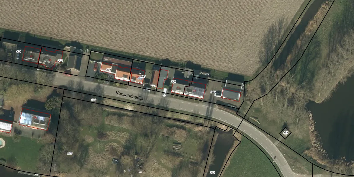 Het perceel waarop Kooilandsedijk 21 staat heeft een oppervlakte van 255 m². Dit is een middelgroot perceel. De perceeloppervlakte wordt geregistreerd door het Kadaster. Gedetailleerde informatie over de maten van dit perceel kunt u vinden in het rapport Kadastrale kaart met maatvoering van Kooilandsedijk 21.