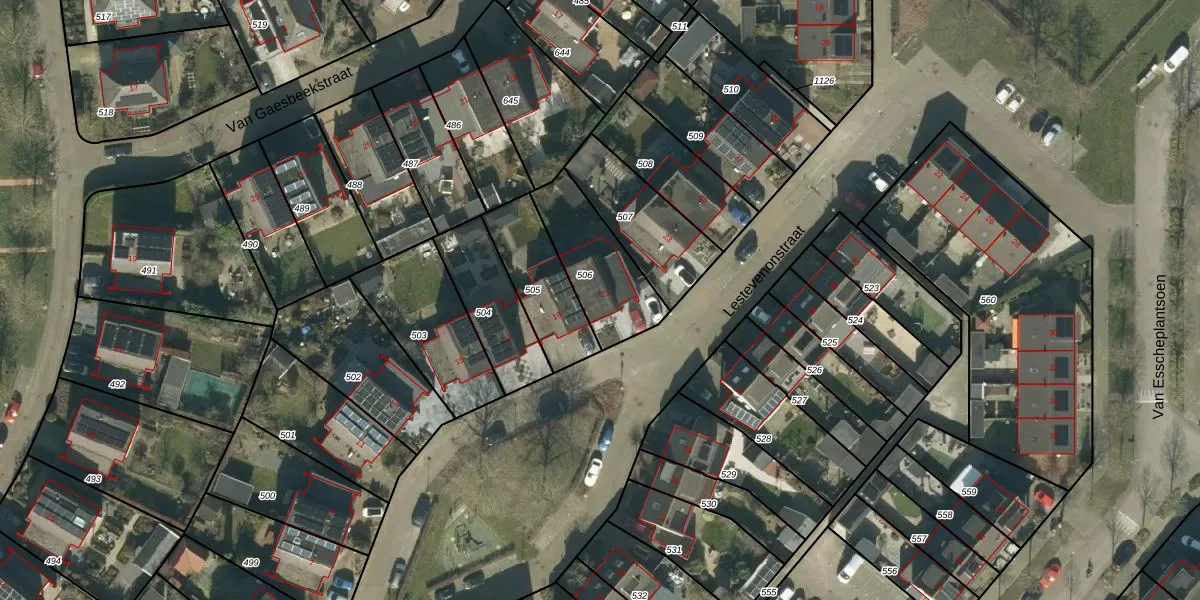 Het perceel waarop Lestevenonstraat 21 staat heeft een oppervlakte van 300 m². Dit is een groot perceel. De perceeloppervlakte wordt geregistreerd door het Kadaster. Gedetailleerde informatie over de maten van dit perceel kunt u vinden in het rapport Kadastrale kaart met maatvoering van Lestevenonstraat 21.