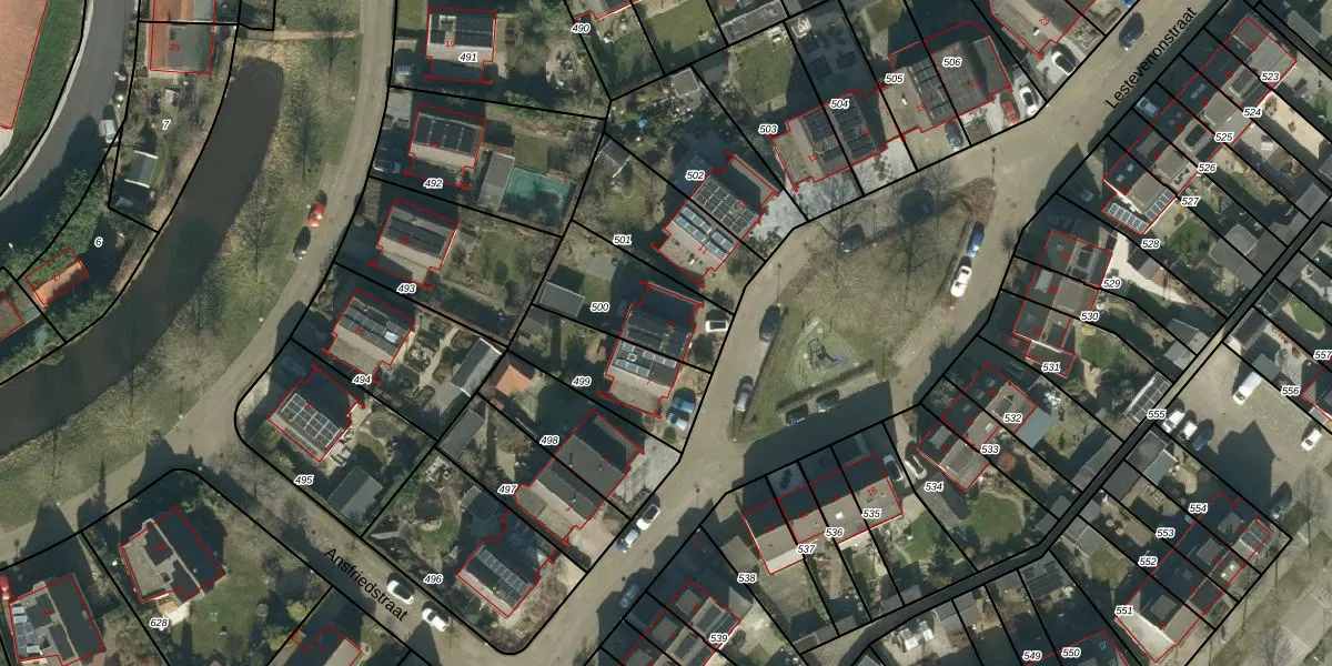 Lestevenonstraat 9 is gelegen op kadastraal perceel SEN00V500. Deze kadastrale aanduiding is uniek en wordt gebruikt door het Kadaster om eigendomsrechten en andere zakelijke rechten vast te leggen. Het perceel maakt onderdeel uit van de kadastrale gemeente Strijen.
