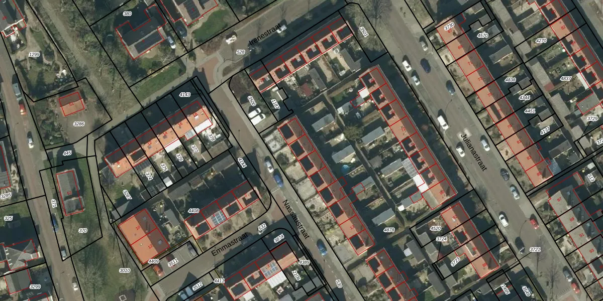Het perceel waarop Nassaustraat 3 staat heeft een oppervlakte van 4540 m². Dit is een zeer groot perceel. De perceeloppervlakte wordt geregistreerd door het Kadaster. Gedetailleerde informatie over de maten van dit perceel kunt u vinden in het rapport Kadastrale kaart met maatvoering van Nassaustraat 3.