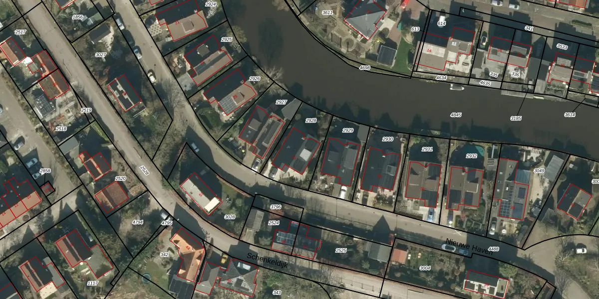 Het perceel waarop Nieuwe Haven 29 staat heeft een oppervlakte van 387 m². Dit is een groot perceel. De perceeloppervlakte wordt geregistreerd door het Kadaster. Gedetailleerde informatie over de maten van dit perceel kunt u vinden in het rapport Kadastrale kaart met maatvoering van Nieuwe Haven 29.