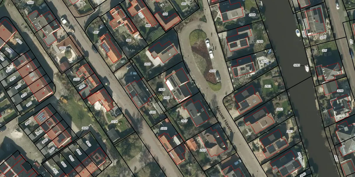 Het perceel waarop Nieuwe Haven 4 staat heeft een oppervlakte van 442 m². Dit is een groot perceel. De perceeloppervlakte wordt geregistreerd door het Kadaster. Gedetailleerde informatie over de maten van dit perceel kunt u vinden in het rapport Kadastrale kaart met maatvoering van Nieuwe Haven 4.
