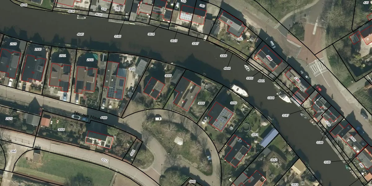 Het perceel waarop Nieuwe Haven 43 staat heeft een oppervlakte van 489 m². Dit is een groot perceel. De perceeloppervlakte wordt geregistreerd door het Kadaster. Gedetailleerde informatie over de maten van dit perceel kunt u vinden in het rapport Kadastrale kaart met maatvoering van Nieuwe Haven 43.