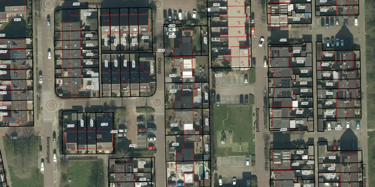 Gebruik de zoekbalk of klik op een perceel voor informatie over de adressen binnen dit perceel.