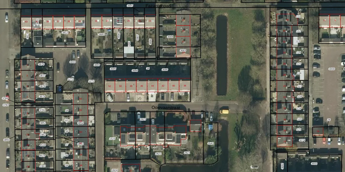 Het perceel waarop Ooievaarstraat 40 staat heeft een oppervlakte van 1176 m². Dit is een zeer groot perceel. De perceeloppervlakte wordt geregistreerd door het Kadaster. Gedetailleerde informatie over de maten van dit perceel kunt u vinden in het rapport Kadastrale kaart met maatvoering van Ooievaarstraat 40.