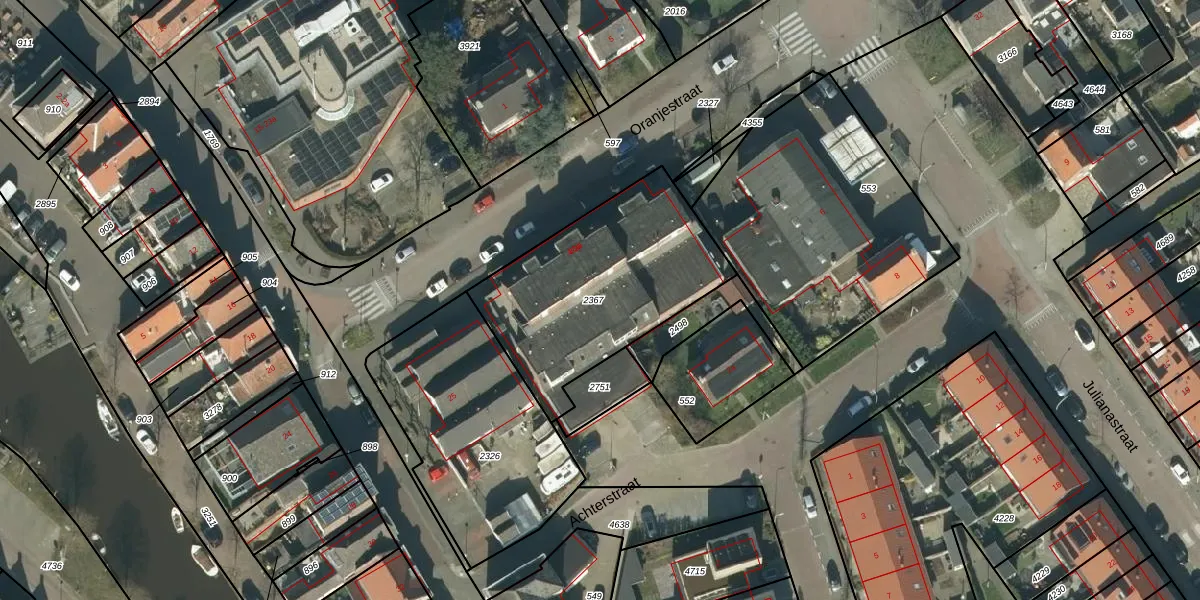 Het perceel waarop Oranjestraat 6 staat heeft een oppervlakte van 889 m². Dit is een groot perceel. De perceeloppervlakte wordt geregistreerd door het Kadaster. Gedetailleerde informatie over de maten van dit perceel kunt u vinden in het rapport Kadastrale kaart met maatvoering van Oranjestraat 6.