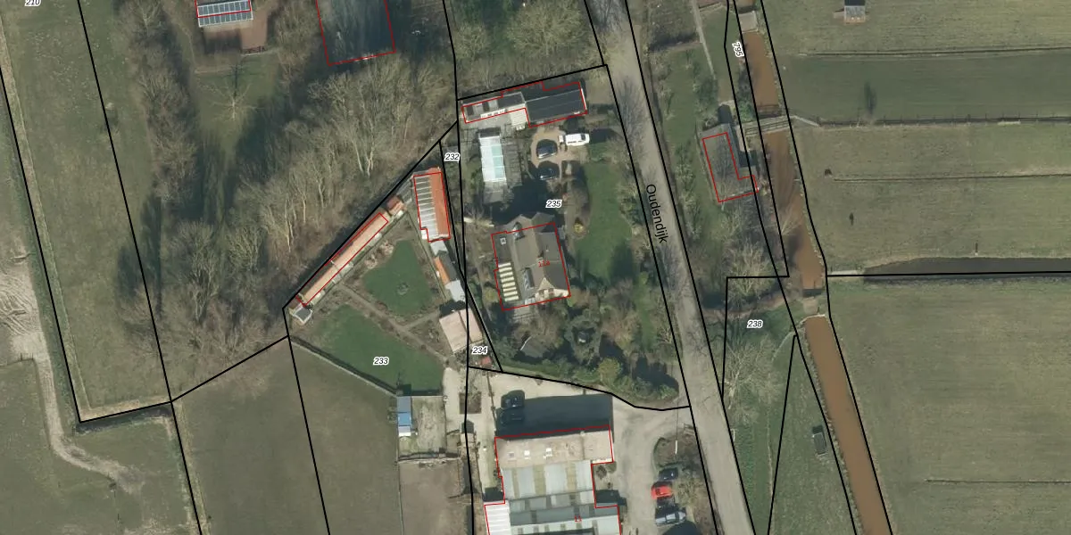Het perceel waarop Oudendijk 11-a staat heeft een oppervlakte van 1960 m². Dit is een zeer groot perceel. De perceeloppervlakte wordt geregistreerd door het Kadaster. Gedetailleerde informatie over de maten van dit perceel kunt u vinden in het rapport Kadastrale kaart met maatvoering van Oudendijk 11-a.