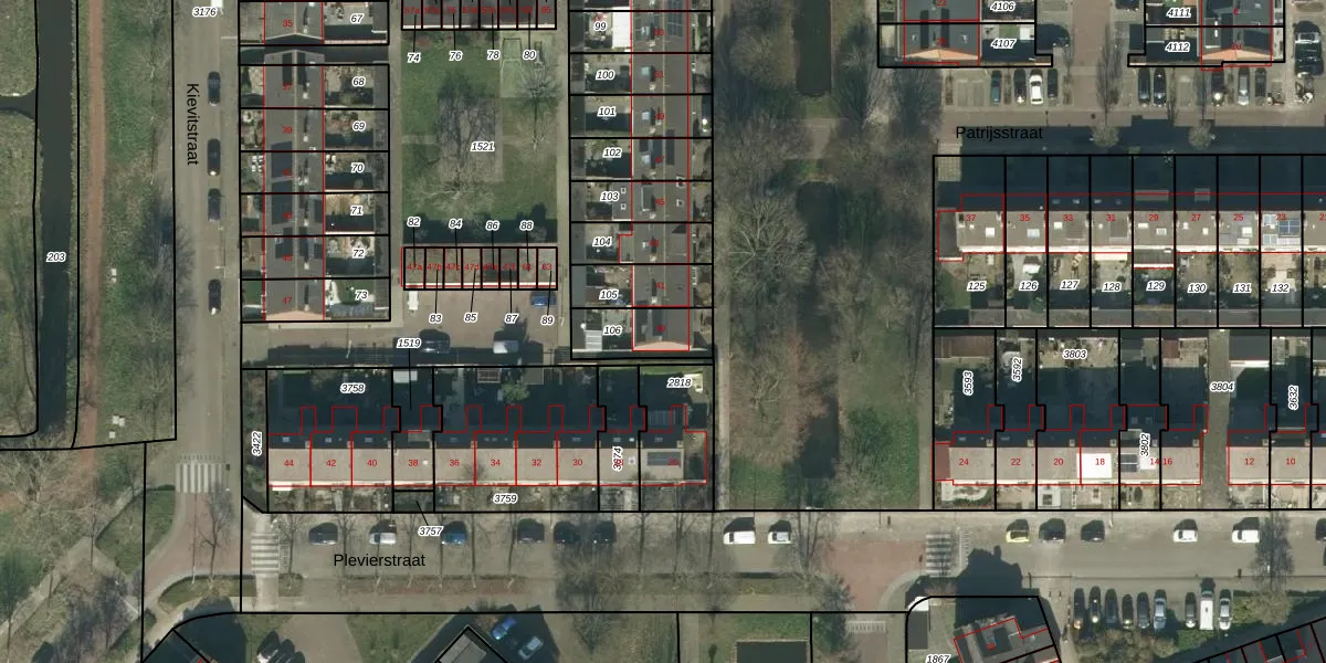 Het perceel waarop Patrijsstraat 39 staat heeft een oppervlakte van 164 m². Dit is een middelgroot perceel. De perceeloppervlakte wordt geregistreerd door het Kadaster. Gedetailleerde informatie over de maten van dit perceel kunt u vinden in het rapport Kadastrale kaart met maatvoering van Patrijsstraat 39.