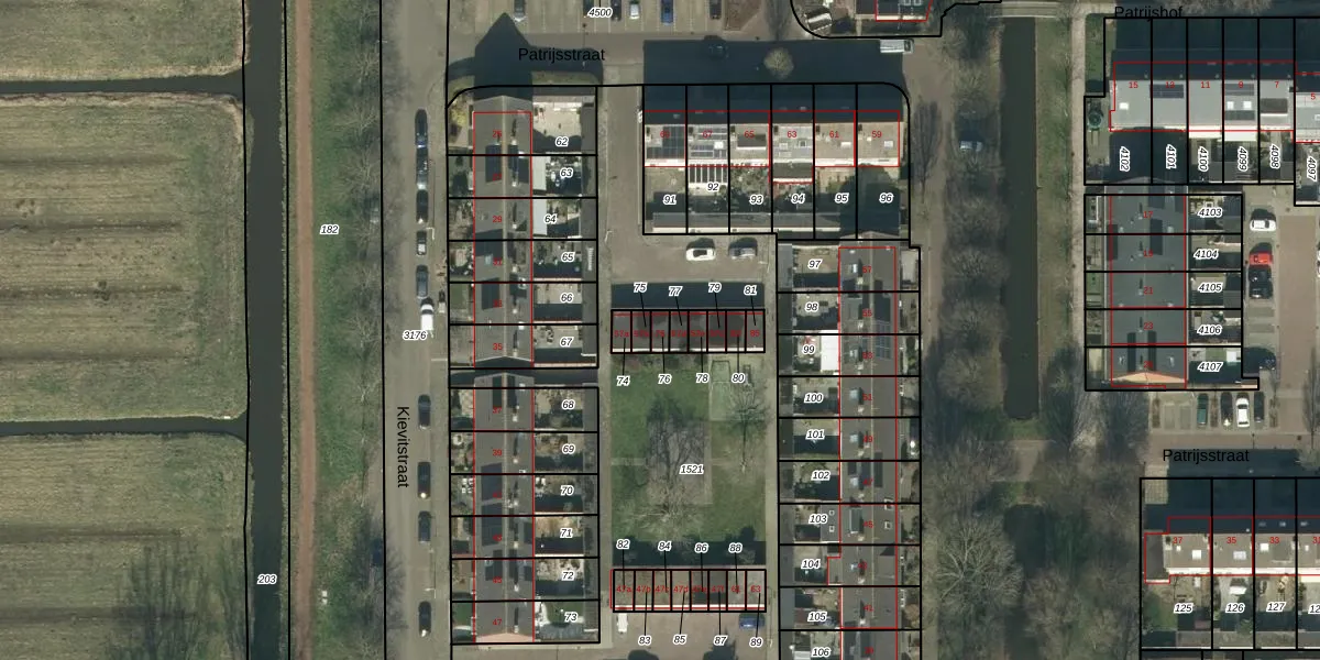 Het perceel waarop Patrijsstraat 75 staat heeft een oppervlakte van 18 m². Dit is een klein perceel. De perceeloppervlakte wordt geregistreerd door het Kadaster. Gedetailleerde informatie over de maten van dit perceel kunt u vinden in het rapport Kadastrale kaart met maatvoering van Patrijsstraat 75.