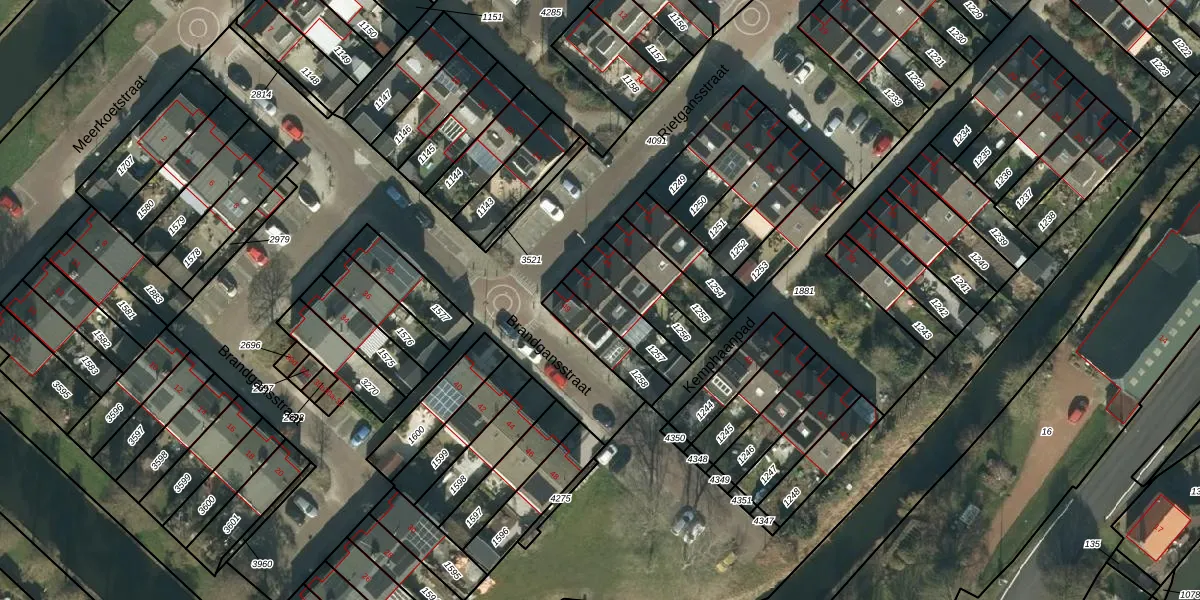 Gebruik de zoekbalk of klik op een perceel voor informatie over de adressen binnen dit perceel.