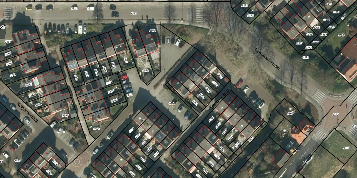 Gebruik de zoekbalk of klik op een perceel voor informatie over de adressen binnen dit perceel.