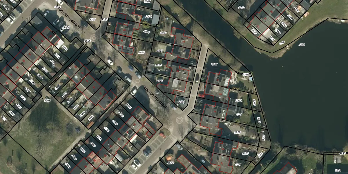 Gebruik de zoekbalk of klik op een perceel voor informatie over de adressen binnen dit perceel.