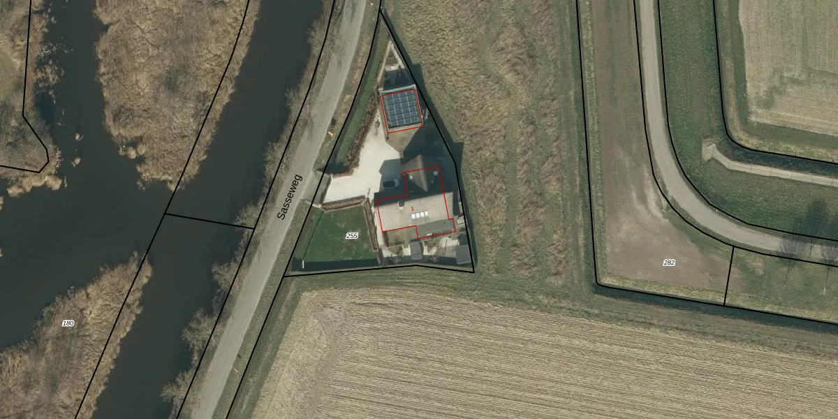 Sasseweg 1 is gelegen op kadastraal perceel SEN00T255. Deze kadastrale aanduiding is uniek en wordt gebruikt door het Kadaster om eigendomsrechten en andere zakelijke rechten vast te leggen. Het perceel maakt onderdeel uit van de kadastrale gemeente Strijen.