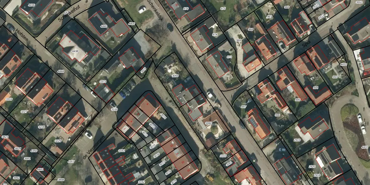 Gebruik de zoekbalk of klik op een perceel voor informatie over de adressen binnen dit perceel.