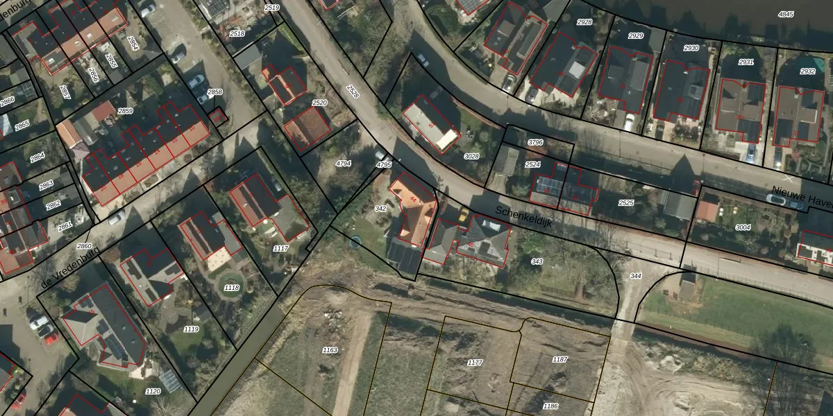 Het perceel waarop Schenkeldijk 44 staat heeft een oppervlakte van 420 m². Dit is een groot perceel. De perceeloppervlakte wordt geregistreerd door het Kadaster. Gedetailleerde informatie over de maten van dit perceel kunt u vinden in het rapport Kadastrale kaart met maatvoering van Schenkeldijk 44.
